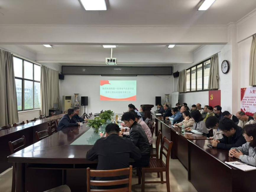 本网讯(通讯员 许楠 贺文德 朱丽娜 )为精准把握工程教育专业认证标准,提升迎接专家进校考查筹备工作的针对性与专业性,4月21日,学院在319会议室举办工程教育专业认证迎评工作经验指导交流会。邀请武汉科技大学人工智能与自动化学院副院长程磊和电气工程系主任张良力莅临会场,传经送宝、交流指导,共同推进工程教育专业认证建设。电气信息学院党委书记谢春晖、党委副书记周磊,以及学院通信工程、自动化、电气工程及其自动化三个进校考查专业的系主任、全体教师,教学管理人员和学工办主任参加会议,会议由副院长田斌主持。