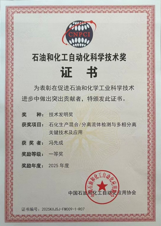 本网讯(通讯员 姚贞建,朱丽娜)2026年3月21日,2025年度中国石油和化工自动化行业科学技术奖与专利奖奖励大会在江苏常州盛大召开。由武汉工程大学洪汉玉教授牵头,联合清华大学深圳国际研究生院、江苏麦赫物联网科技有限公司、应城市新都化工有限责任公司、珠海九通水务股份有限公司等单位共同完成的成果“石化生产混合/分离流体检测与多相分离关键技术及应用”获中国石油和化工自动化行业技术发明一等奖。全国共20家牵头单位获全国发明一等奖,我校项目排第9位。我校主要完成人:洪汉玉、姚贞建、叶亮、冯先成、陈艳菲等。