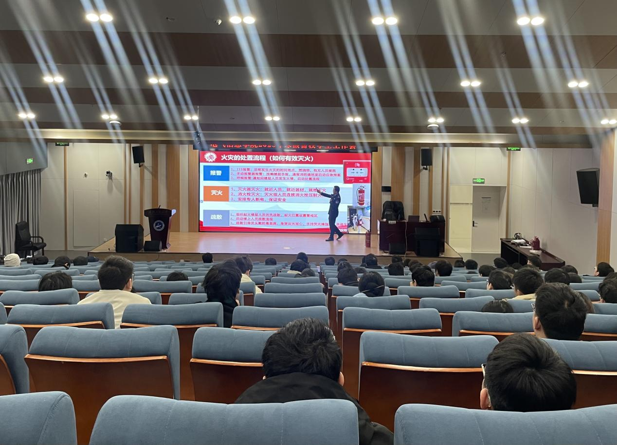 易宇峰以“全面消防、生命至上——安全用火用电”为主题开展消防安全专题培训。他结合高校火灾典型案例,深入浅出地剖析了常见安全隐患的成因与危害,重点讲解了火灾初期扑救技巧、灭火器等消防器材的正确使用方法以及火场疏散逃生的注意事项。易宇峰特别提醒留校学生务必规范使用电器设备,严禁私拉乱接电线,离开实验室、宿舍时切断电源,从源头杜绝火灾事故发生,让同学们深刻认识到消防安全的重要性与紧迫性。