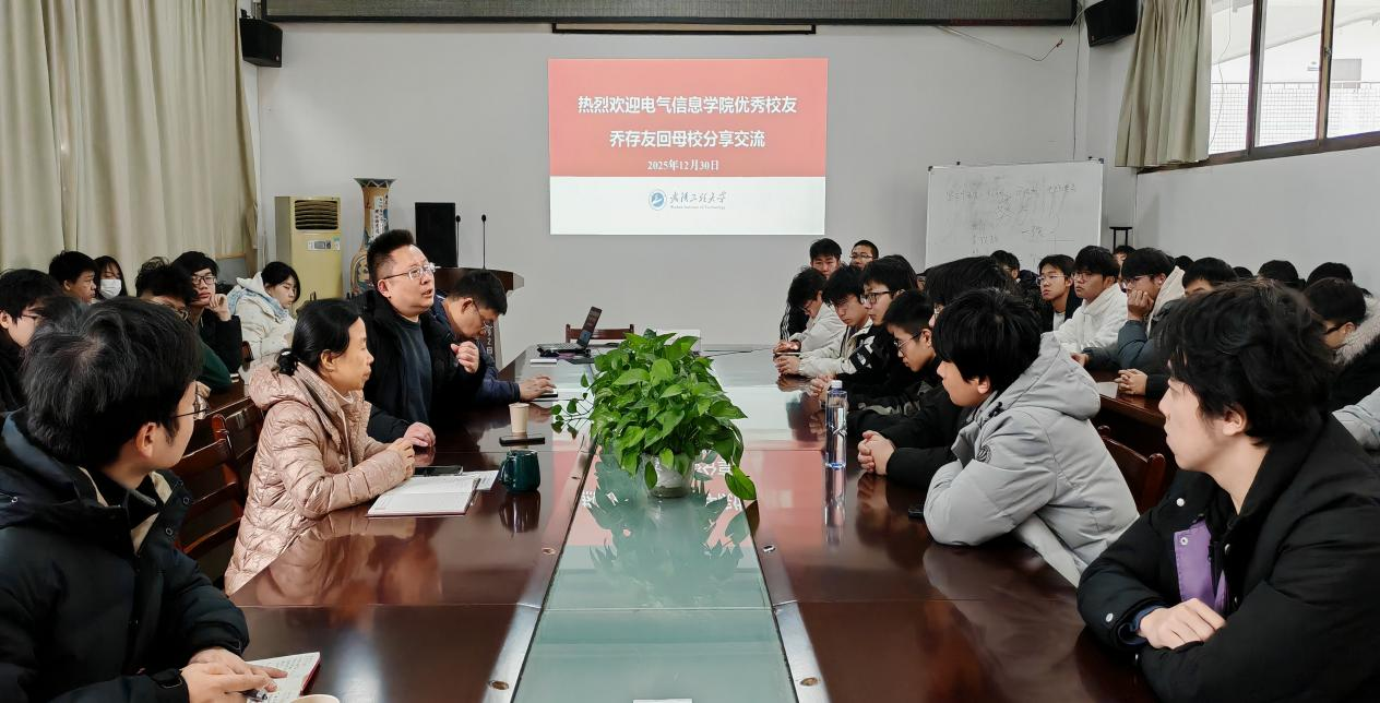 本网讯(通讯员 张哲聪)12月30日上午,电气信息学院在4B319会议室举行优秀校友分享交流会。学院2004届校友、西藏自治区党委和国家电网总公司理论宣讲团成员、国网西藏电力有限公司党委党建部党员教育管理处处长乔存友以“奋斗的足迹与时代的担当”为主题分享,校党委组织部常务副部长王涛、电气信息学院领导班子成员及100余名同学参加分享会,活动由学院党委副书记周磊主持。