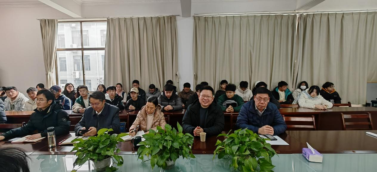 乔存友传达学习了党的二十届四中全会精神,他强调青年学子要努力学习,掌握扎实的本领,为实现高水平科技自立自强贡献力量。乔存友回顾了个人成长与发展历程,饱含深情回忆了自己在武汉工程大学学习经历,分享了在人生关键路口选择扎根西藏、将青春融入祖国边疆建设的思考与抉择。他介绍了西藏电网的发展现状与前景,回应了同学们关于行业与职业发展的关切。乔存友对同学们提出了三点建议:一是将爱国情怀转化为具体行动,在知行合一中成长,欢迎同学们到西藏亲身感受祖国山河的壮丽与发展脉搏;二是积极参加体育锻炼,提高身体素质,为未来发展打下坚实的基础;三是广泛涉猎,充分利用好图书馆资源,增长见识,学习学科、行业前沿知识。