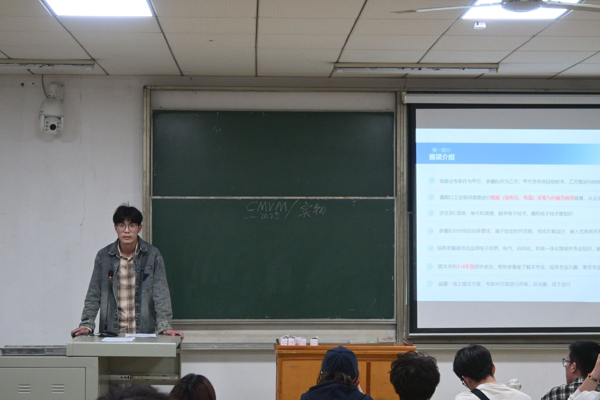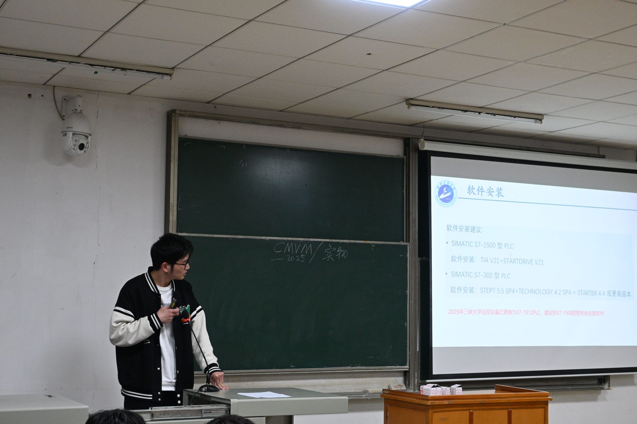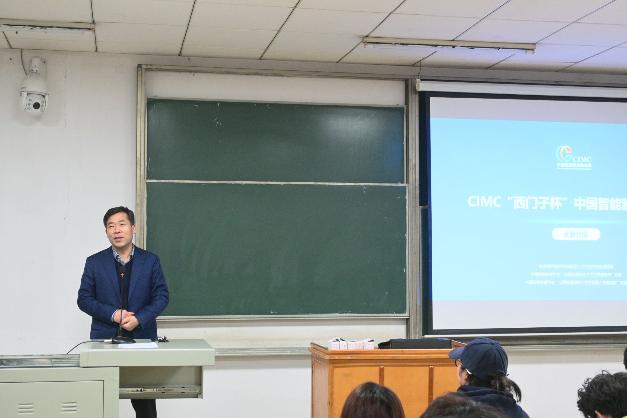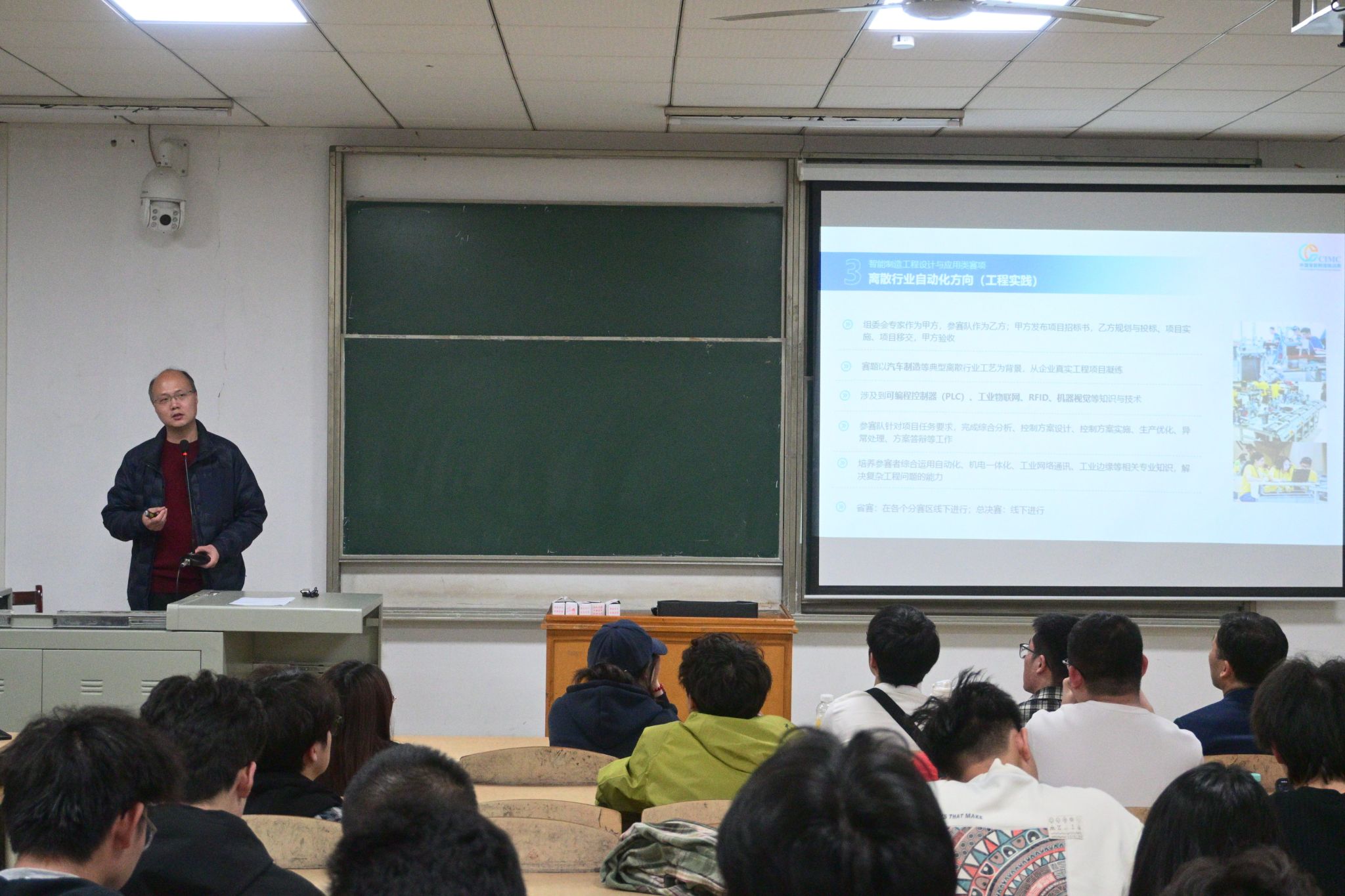 熊涛介绍了“西门子杯”中国智能制造挑战赛的各个赛项,报名和比赛时间以及我校的优势方向,针对同学们关心的赛项选择和比赛设备上机问题,熊涛详细地予以说明并给出建议。