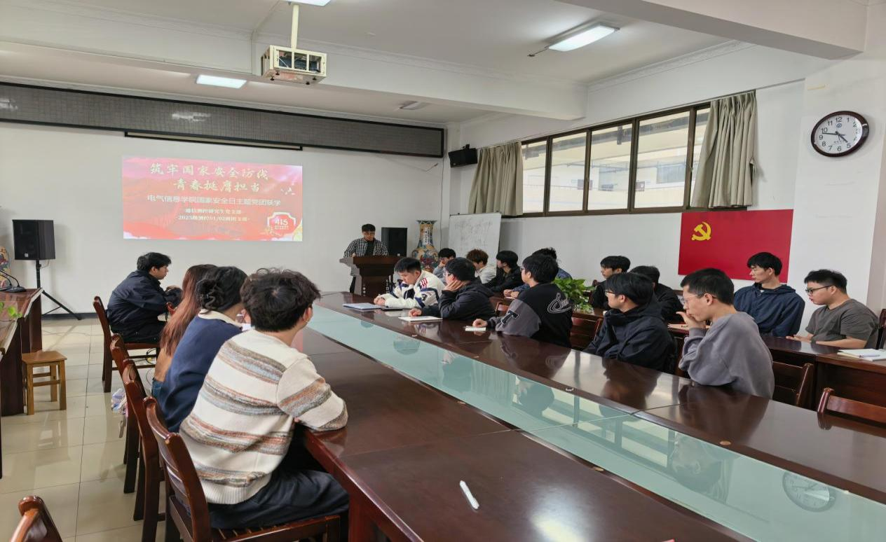 4月14日,电气信息学院通信测控研究生党支部与2025级测控01班、02班团支部共建联学,以“国家安全 青春挺膺”为主题,开展党团联学主题活动,引导青年学子将国家安全意识转化为自觉行动。同学们观看了国家安全警示教育片。在交流环节,大家围绕“新时代青年如何践行总体国家安全观”“青春力量如何筑牢国家安全防线”等主题踊跃发言,结合电气信息专业特色,深入探讨了在信息技术安全、人工智能安全、数据安全等领域的责任与担当。