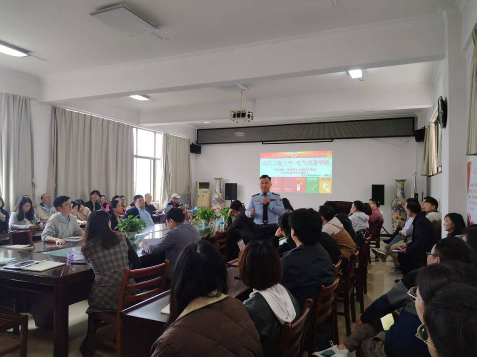 本网讯(通讯员 黄光亮)为切实筑牢校园消防安全防线,进一步提升师生安全意识与应急处置能力,持续织密校园安全防护网,4月16日下午,电气信息学院在319会议室召开消防安全培训会,武汉市利民消防技术服务中心易宇峰受邀做消防安全培训。学院全体教职工参加培训会。